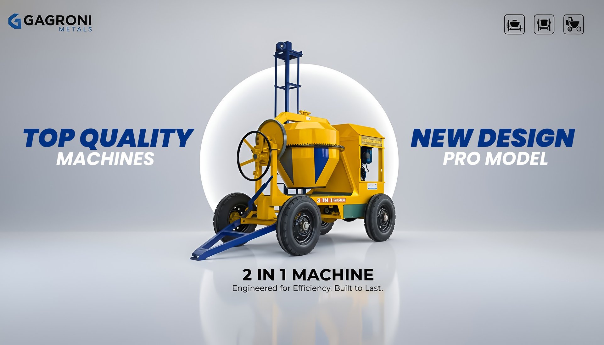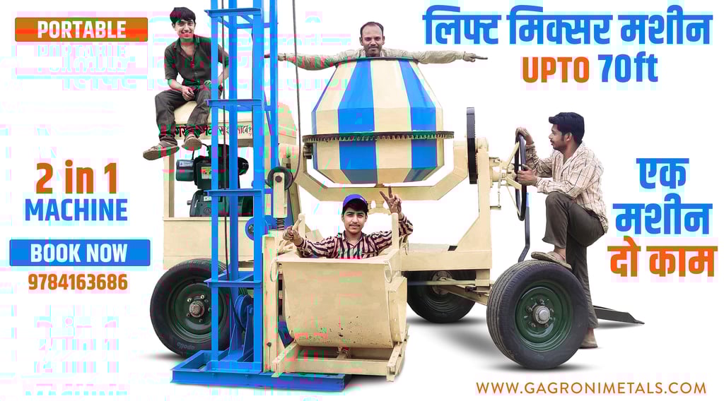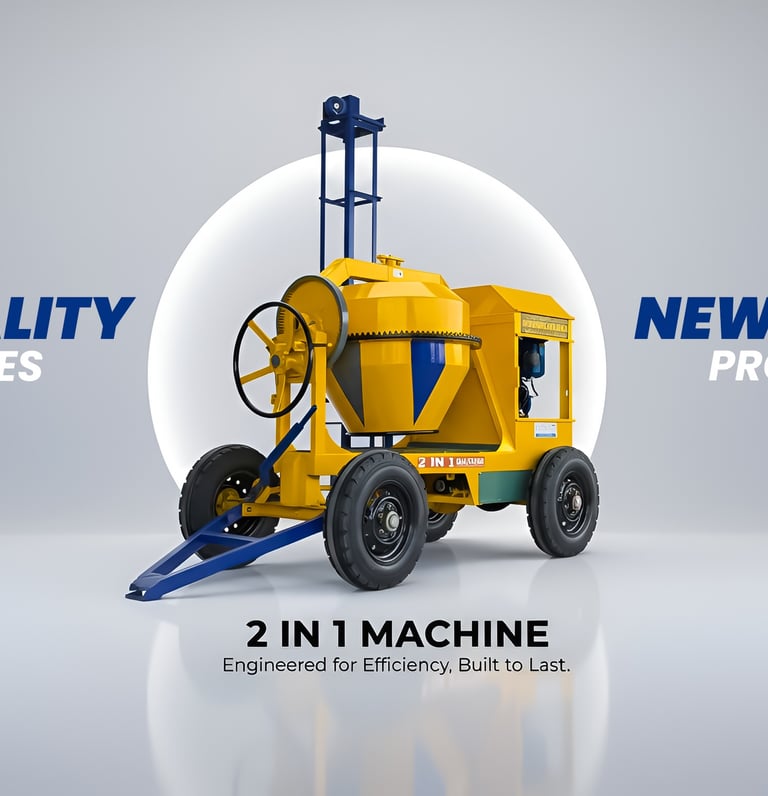We Manufacture High-Quality Construction Machine. 2 in 1 Concrete Lift Mixer Machine Offer High Quality Output. Powerfull 1 Bag Capacity With 14HP Diesel Engine. This Machine Lift Upto 200FT. High Quality Machine Makes High Quality Works.