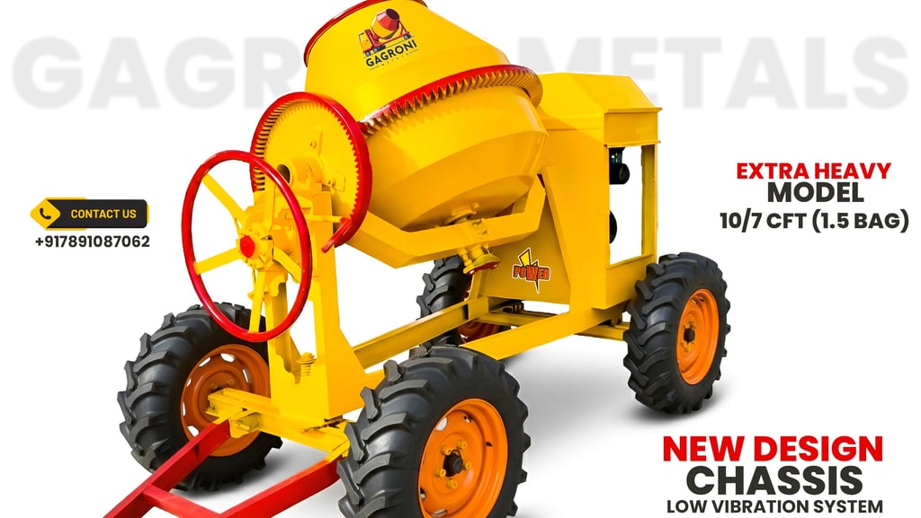When the job demands maximum output and uncompromising durability, the Gagroni Metals Heavy Concrete Mixer delivers. Engineered for large-scale construction and industrial applications, this powerhouse is built with an extra-thick, wear-resistant steel drum and a reinforced chassis to handle the most abrasive aggregates. Its high-torque engine and precision-engineered blades ensure a perfectly homogenous mix in every batch, regardless of the load size. Designed to withstand 24/7 operation in harsh environments, the Gagroni Heavy Mixer is the reliable backbone that high-stakes infrastructure projects depend on.